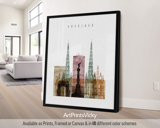 Seeking the ideal wall art to infuse your space with an urban vibe? This Bordeaux poster is perfect for bringing the city’s energy into your home. Its watercolor 1 style beautifully captures the essence of Bordeaux’s skyline in a unique way. This piece also makes an exceptional gift.