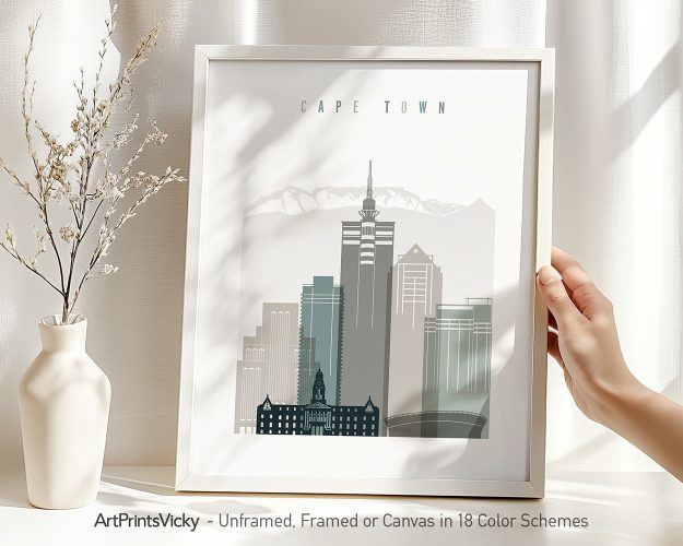 A beautiful Cape Town wall art print showcasing the city’s skyline in earth tones 4 hues, perfect for adding a touch of elegance and urban charm to any space. Wish the newlyweds a lifetime of happiness with this exquisite print, a memorable wedding gift that will adorn their home with warmth and love.