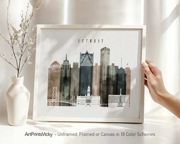 Whether you’re looking to enhance your home decor or searching for a thoughtful gift, this Detroit wall art poster in a watercolor 2 style fits the bill perfectly. It’s more than just a decoration—it’s a piece of art that brings the energy of the city right into your living room, bedroom, or office.