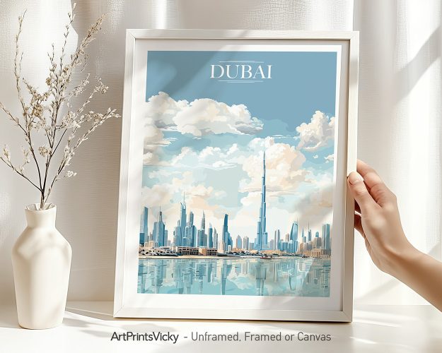 Bring the dynamic spirit and architectural marvels of Dubai into your daily life with this captivating city poster. Let it evoke memories of the gleaming heights of Burj Khalifa and experiencing the cosmopolitan lifestyle. A thoughtful gift for someone who loves the fascination of Dubai.