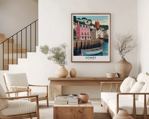This Fowey, Cornwall wall art print captures a peaceful harbor scene. Perfect for home or office decor, it brings the calm beauty of the British countryside into any space. Ideal as a thoughtful gift for lovers of Cornwall, coastal scenery, or travel-inspired wall art.