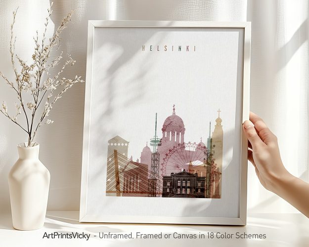 Adorn your home or office with the timeless beauty of Helsinki’s skyline. Our watercolor 1 theme, wall art print adds a touch of elegance and serenity to your living space.