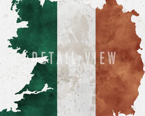 Watercolor Ireland map filled with the Irish tricolor, a clean country map poster for living rooms, offices, entryways, and travel themed spaces.