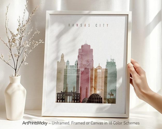 Kansas City Wall Print in Warm Watercolors