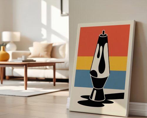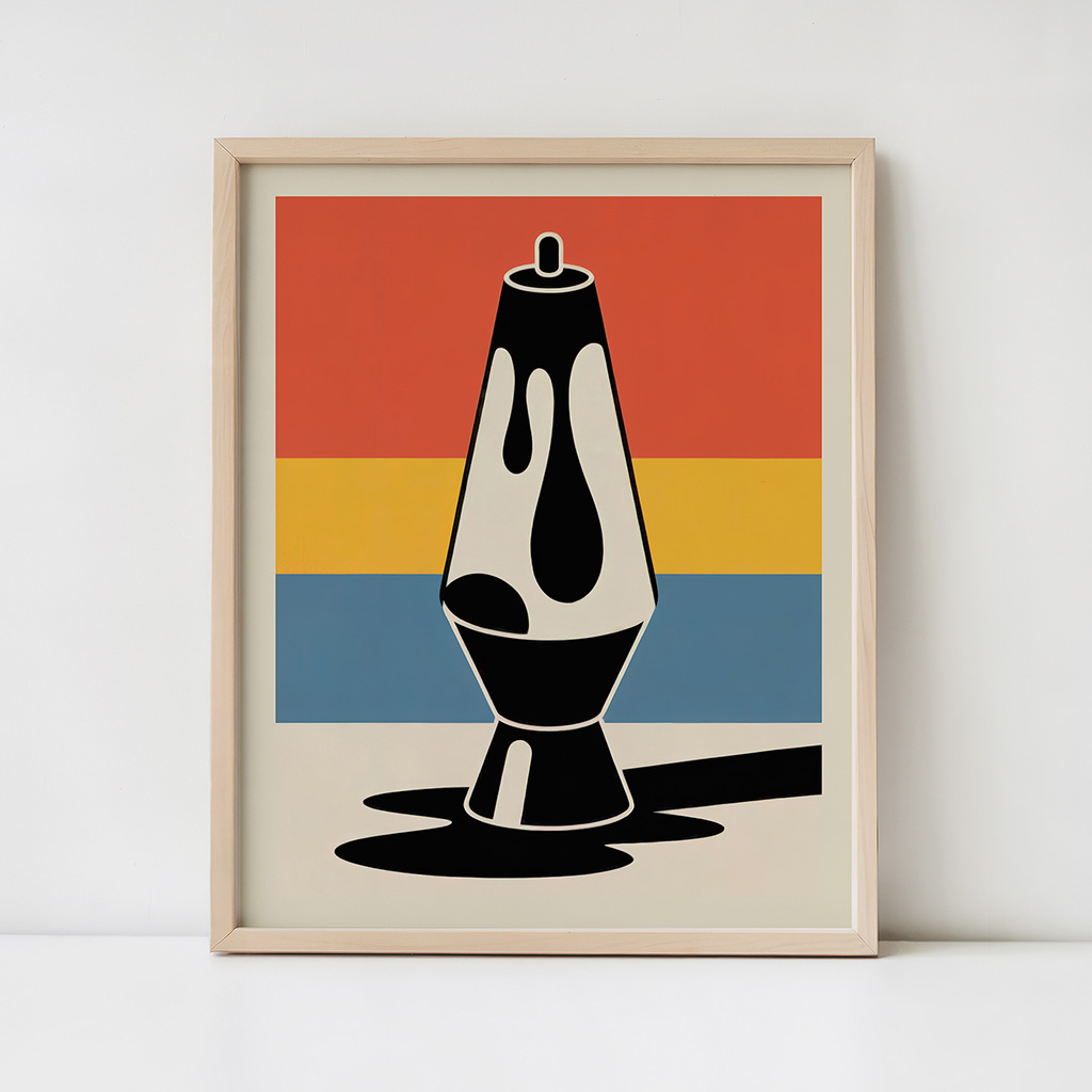 Groovy pop art print featuring iconic lava lamp in bauhaus style. Perfect for retro bedrooms, dorm rooms, or 70s-inspired spaces. Nostalgic wall decor.