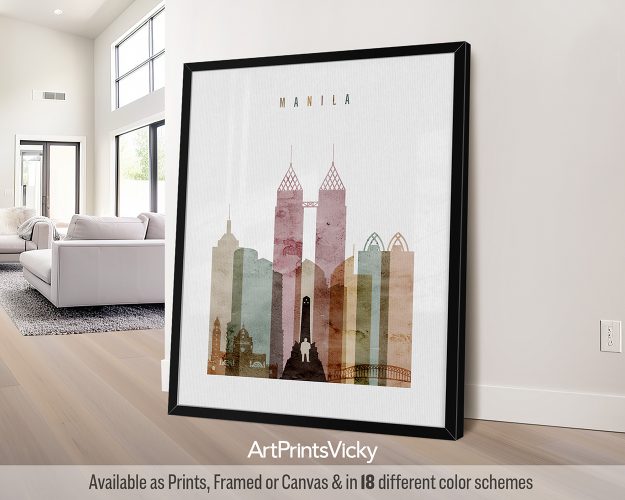 Introduce a touch of elegance and serenity to your home or office with the beauty of Manila’s skyline. Our watercolor 1 style wall art print brings sophistication to any space, making it the perfect gift for friends, birthdays, or any special occasion.