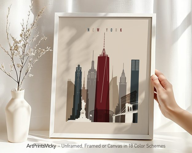 A beautiful New York wall art print showcasing the city’s skyline in earth tones 2 hues, perfect for adding a touch of elegance and urban charm to any space. Wish the newlyweds a lifetime of happiness with this exquisite print, a memorable wedding gift that will adorn their home with warmth and love.