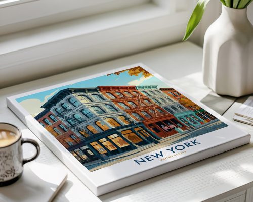 Capture the charm of New York City’s SoHo with this art print, showcasing its classic cast-iron architecture. Perfect for NYC enthusiasts, architectural lovers, and those seeking a stylish piece of Manhattan urban decor.