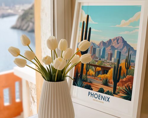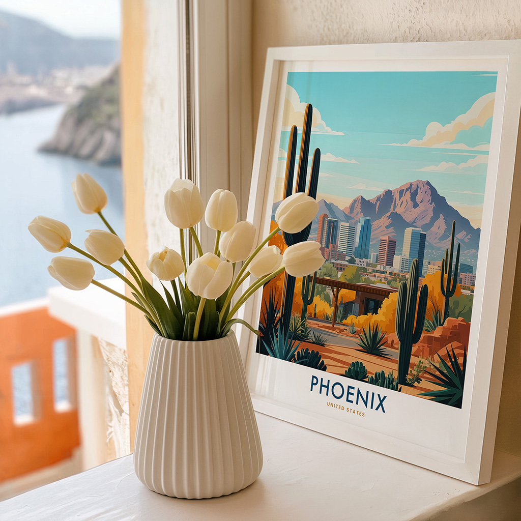 Bring the unique beauty of the American Southwest into your home with this Phoenix art print. Ideal for Arizona lovers, nature enthusiasts, and those who appreciate vibrant, unique wall decor.