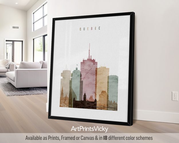 Travel to the heart of Quebec City with this skyline wall art print, perfect for brightening someone’s day as a ‘just because’ gift. With its warm watercolor 1 palette, this poster adds a sophisticated charm to any space in your home or office.