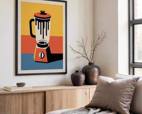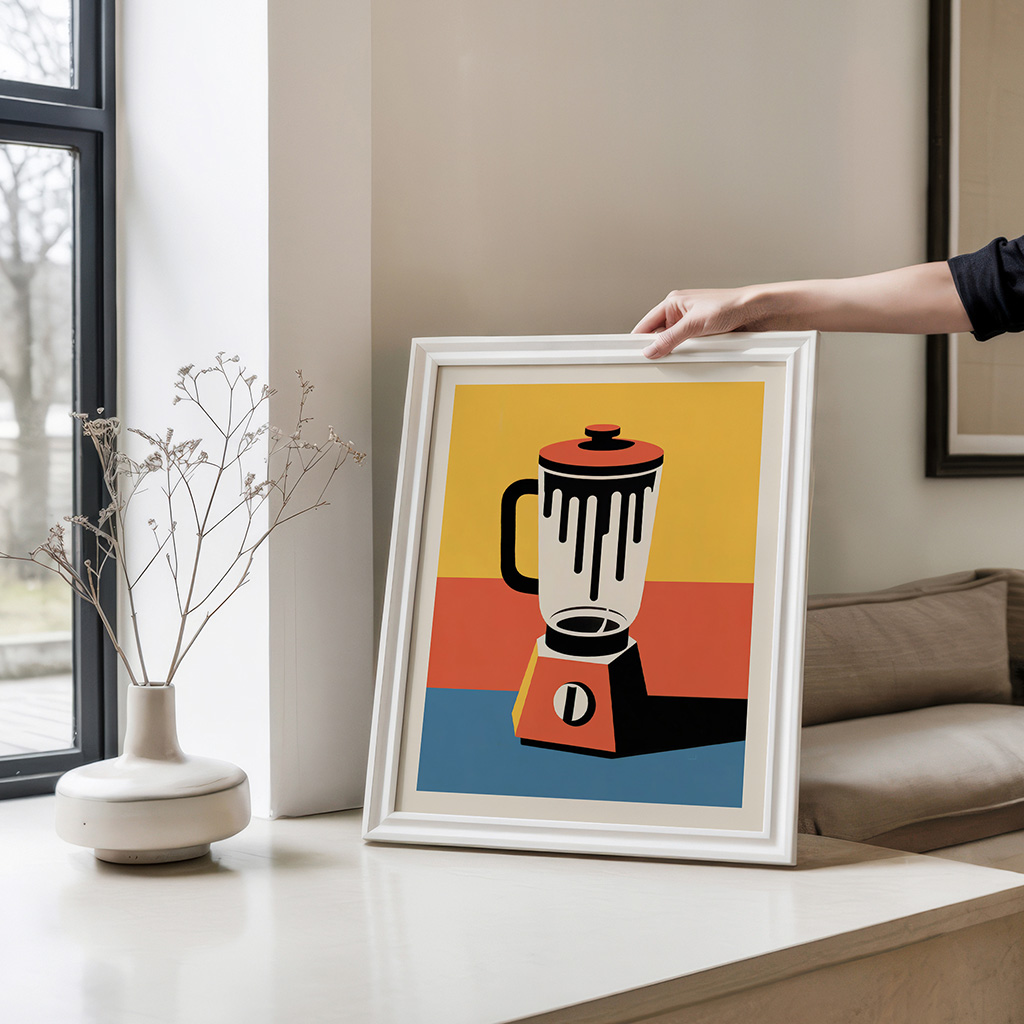 Retro blender artwork for quirky home or office wall decor, perfect gift for kitchen lovers and vintage decor fans.
