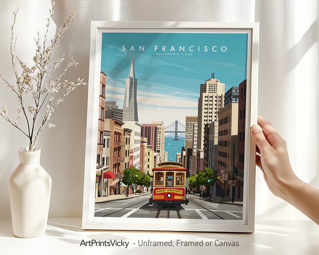This San Francisco art print adds warmth and character to any space, making it a thoughtful gift for someone who holds the city close to their heart. Whether it’s a reminder of past travels or a nod to hometown pride, this travel poster feels like a little piece of the city you can always come back to.