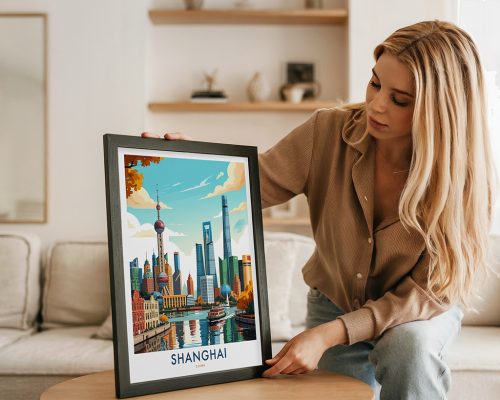 Experience the dazzling futurism of Shanghai with this skyline art print. Ideal for lovers of contemporary cities, Asian travel, and those seeking bold, dynamic urban wall decor.