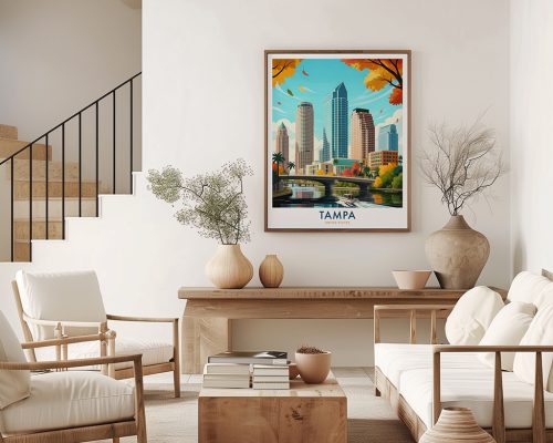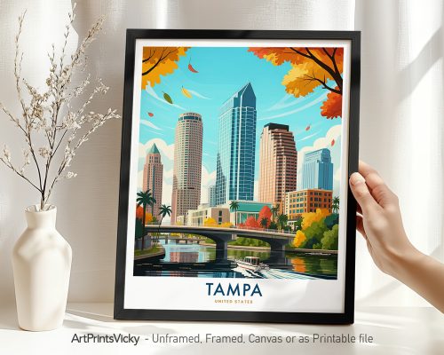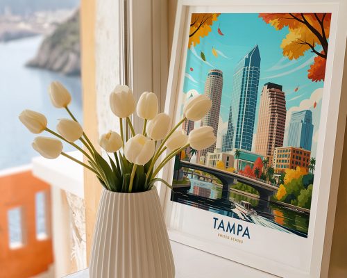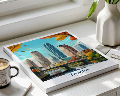 Celebrate Tampa’s skyline and tropical energy with this illustrated art print. A perfect addition for Florida homes, Tampa Bay lovers, or modern travel art collections. This poster is a versatile decor piece for your home, office, or studio space.