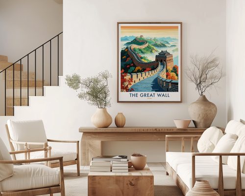 Experience the grandeur of history with this Great Wall of China art print. A timeless piece celebrating an iconic ancient wonder, perfect for history enthusiasts, travel lovers, and those seeking unique cultural wall decor.