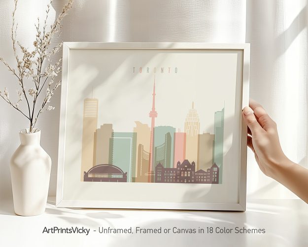 Light and refined, this Toronto skyline poster in pastel cream hues brings a peaceful touch to modern spaces. Perfect for enhancing home decor, it makes a thoughtful gift for friends and family. It also adds a touch of sophistication to any office, creating a calm and inspiring atmosphere.